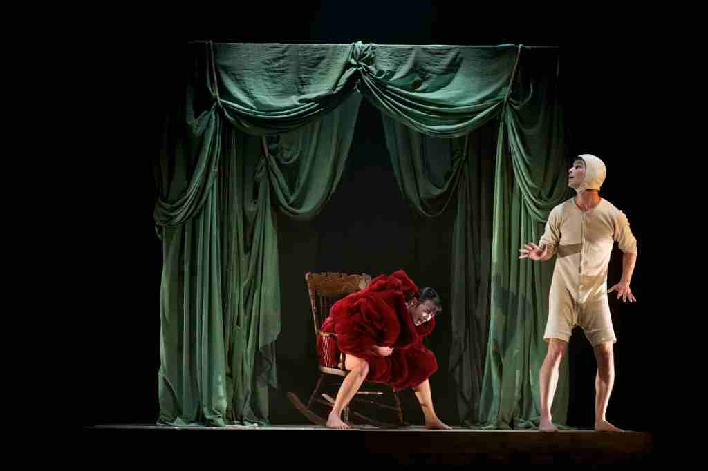 I tre attori condividono la scena in forte armonia. La loro fisicità rimane impressa. E suggerisce caratteri, poi ribaltati dall’andamento delle vicende di cui sono protagonisti. Alberto Gandolfo è il padre; Federico Bizzarri interpreta il figlio maggiore; Damiano Spitaleri nel ruolo del titolo. Il terzetto è abilissimo, anche per come affronta la lingua inventata con cui si esprimono i loro personaggi. Un comprensibile mix di espressioni arcaiche e dialettali, che contribuisce a definire il piccolo mondo – fuori dal tempo e dallo spazio – in cui agiscono.