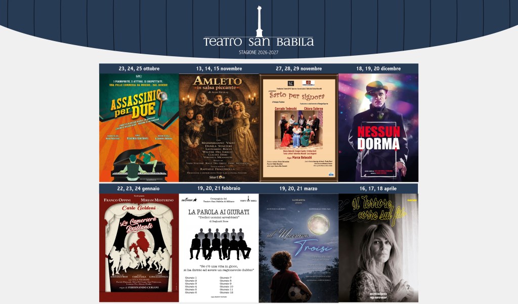 Milano 20 aprile ore 12 – Il Teatro San Babila presenta la Stagione teatrale 2026/2027, un cartellone di otto titoli che attraversa generi che spaziano dalla prosa classica alla commedia brillante e al musical. In programma da ottobre 2026 ad aprile 2027, con protagonisti interpreti affermati e nuove voci della scena italiana.
